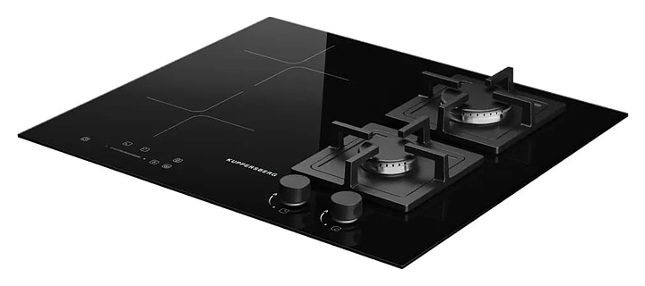 Комбинированная варочная панель Kuppersberg IGS 601 предназначена для приготовления большого ассортимента блюд в в домашних условиях. Модель оснащена кабелем питания, 4 варочными зонами различной мощности: 2 газовыми с 2 поворотными переключателями и 2 индукционными с сенсорной панелью управления. Рабочая поверхность выполнена из высококачественной стеклокерамики KANGER черного цвета с белой сериографией, основания газовых конфорок и решетки – из чугуна с нескользящей низкопористой поверхностью, переключатели цилиндрической формы с черной матовой поверхностью.