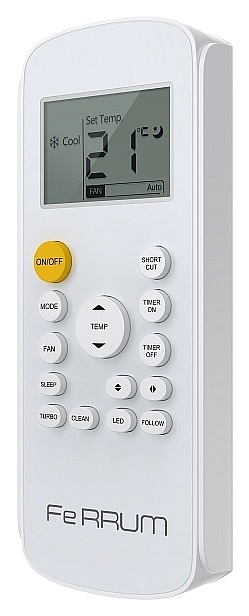 Настенная сплит-система Ferrum FIS18F2_ / FOS18F2_-WS40 серии F2 WS40 используется для создания максимально кофмортных условий микроклимата в жилых, вдминистративных и коммерческих помещениях. Модель состоит из внутреннего блока FIS18F2_ и наружного блока FOS18F2_-WS40. Наружный блок оснащен 3-лопастным вентилятором, защитными решеткой и крышкой для сервисных вентилей, внутренний блок – воздухозаборной решеткой, откидной лицевой панелью, подвижной горизонтальной заслонкой, электронным блоком управления и светодиодным дисплеем скрытого типа с проецируемой на фронтальную панель индикацией, пульт – кнопочной клавиатурой и информативным жидкокристаллическим дисплеем с фоновой подсветкой. Облицовка внутреннего блока выполнена из пластика с поверхностью белого цвета и декоративной окантовкой лицевой панели серебристого оттенка, корпус пульта – из ударопрочного белого пластика, корпус наружного блока – из стали с антикоррозийным покрытием белого цвета, теплообменники с гидрофобным антикоррозийным покрытием Golden Fin.