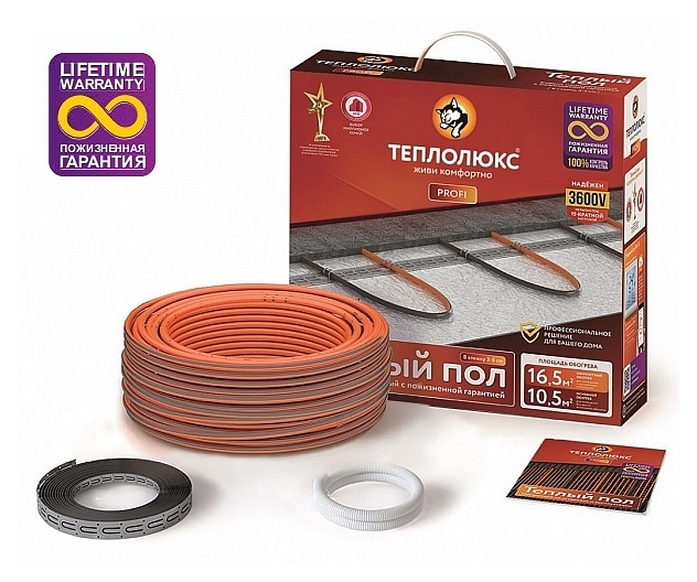 Нагревательный кабель Теплолюкс ProfiRoll предназначен для создания теплого пола, применяемого для дополнительного или полного обогрева любого помещения - балкона, коридора, кухни, санузла, жилой комнаты, квартиры или загородного дома. Модель состоит из тепловыделяющего элемента на основе двухжильного экранированного нагревательного кабеля, оснащенного с одной стороны соединительной муфтой и установочным проводом, а с другой - концевой муфтой. В комплект поставки входят гофрированная трубка с заглушкой для датчика температуры и монтажная лента. Особенности: