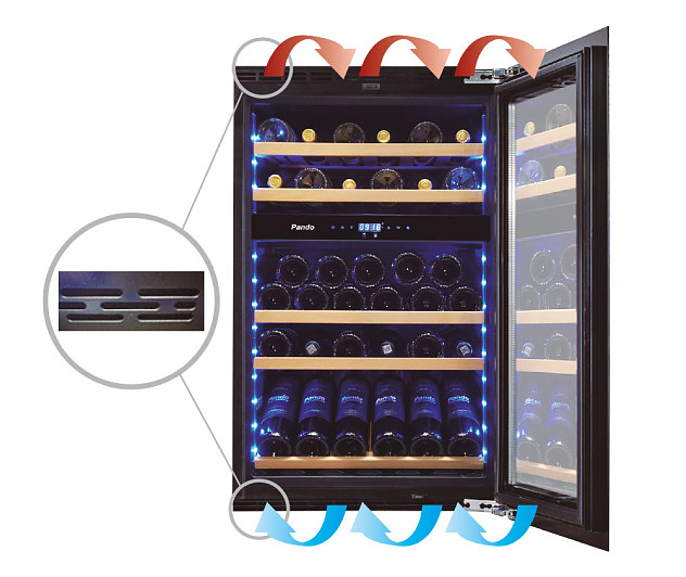 Винный шкаф Pando PVZB 30-16 CRR предназначен для кратковременного хранения вина при определенном уровне влажности и температуры в ресторанах, специализированных магазинах, отелях, подсобных складских помещениях, в частных домах или квартирах и подготовки вина к подаче на стол. Модель оснащена цифровым дисплеем с термостатом и цифровым управлением, внутренней LED - подсветкой голубого цвета с выключателем и регулируемыми по высоте ножками. Дверь выполнена из тройного закаленного стекла с защитой от УФ-лучей и отделкой черного цвета, полки - из бука, ручка - из нержавеющей стали. Особенности: