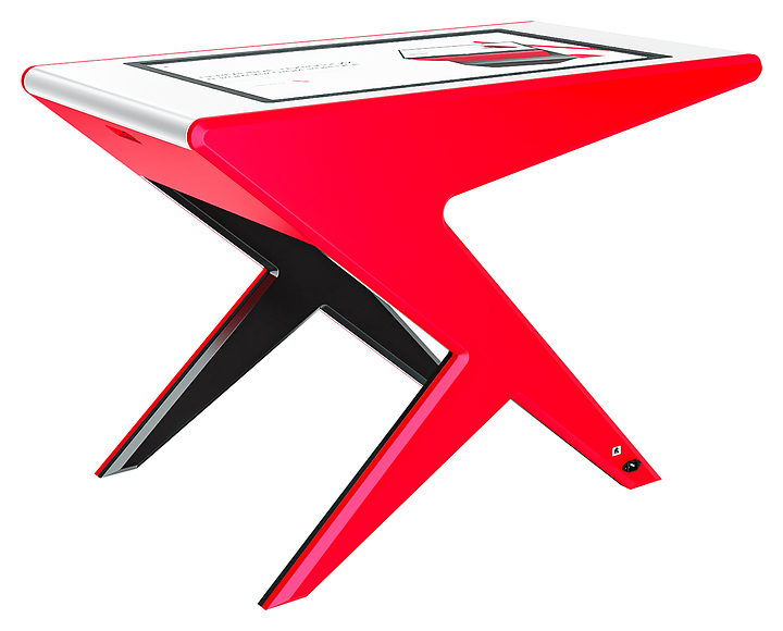Интерактивный стол AxeTech Spaсe Start используется для предоставления информации пользователям. Модель оснащена проекционно-емкостной технологией на 10 одновременных касаний, Wi-Fi адаптером и встроенной аудиосистемой. Утонченный дизайн и необычная форма ножек напоминают космический объект и гарантируют привлечение внимания. Корпус выполнен из стали. Особенности: