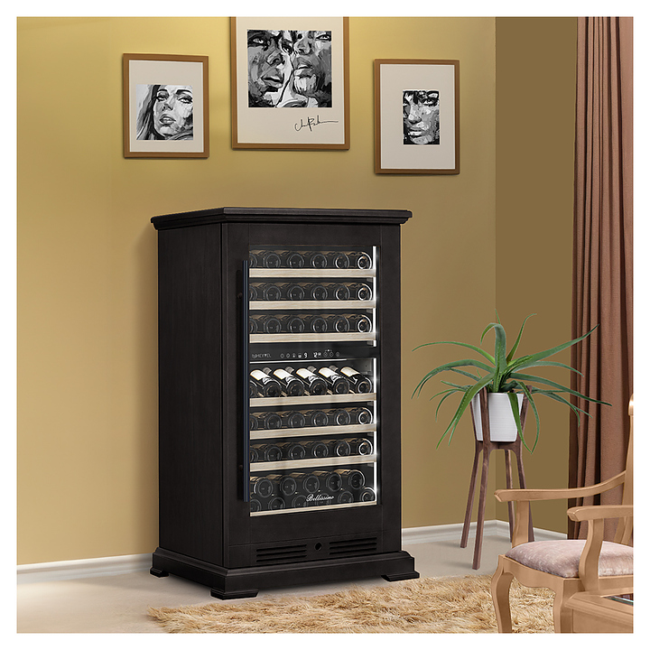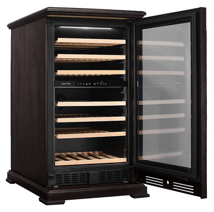 Винный шкаф MEYVEL MV77PRO-KBT2 предназначен для демонстрации, хранения и создания оптимальных условий для сохранения всех вкусовых свойств вина в бутылках на предприятиях общественного питания, торговли, в барах, ресторанах, специализированных магазинах, частных домах или квартирах. Модель оснащена интуитивно-понятной сенсорной панелью управления, электронным термостатом и внутренней светодиодной подсветкой. Корпус выполнен из стали с обшивкой из натурального шпона бука, дверь - из тройного стекла с УФ защитой, полки - из массива бука. Особенности: