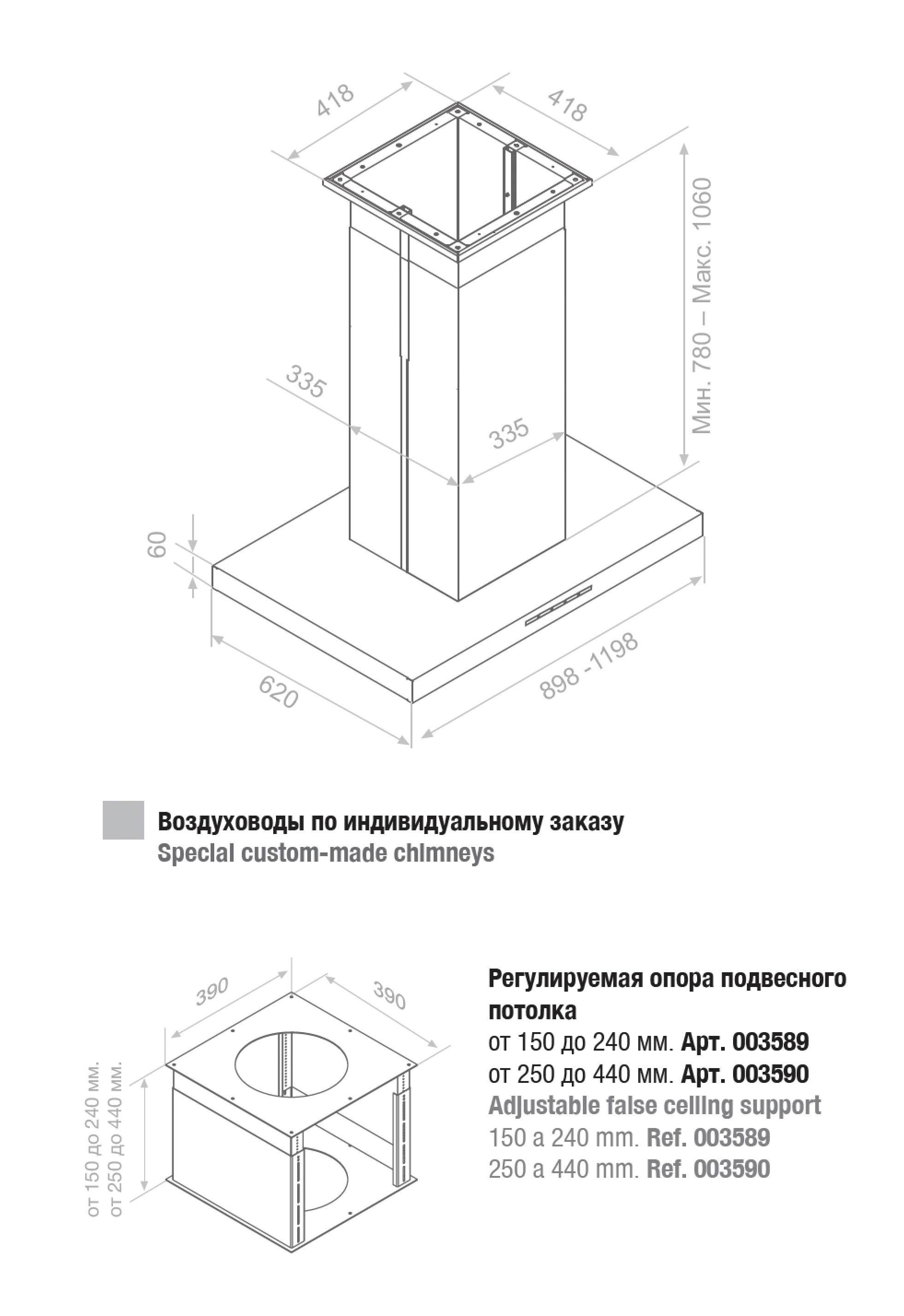 - Минимальная высота установки над варочной поверхностью: 650 мм