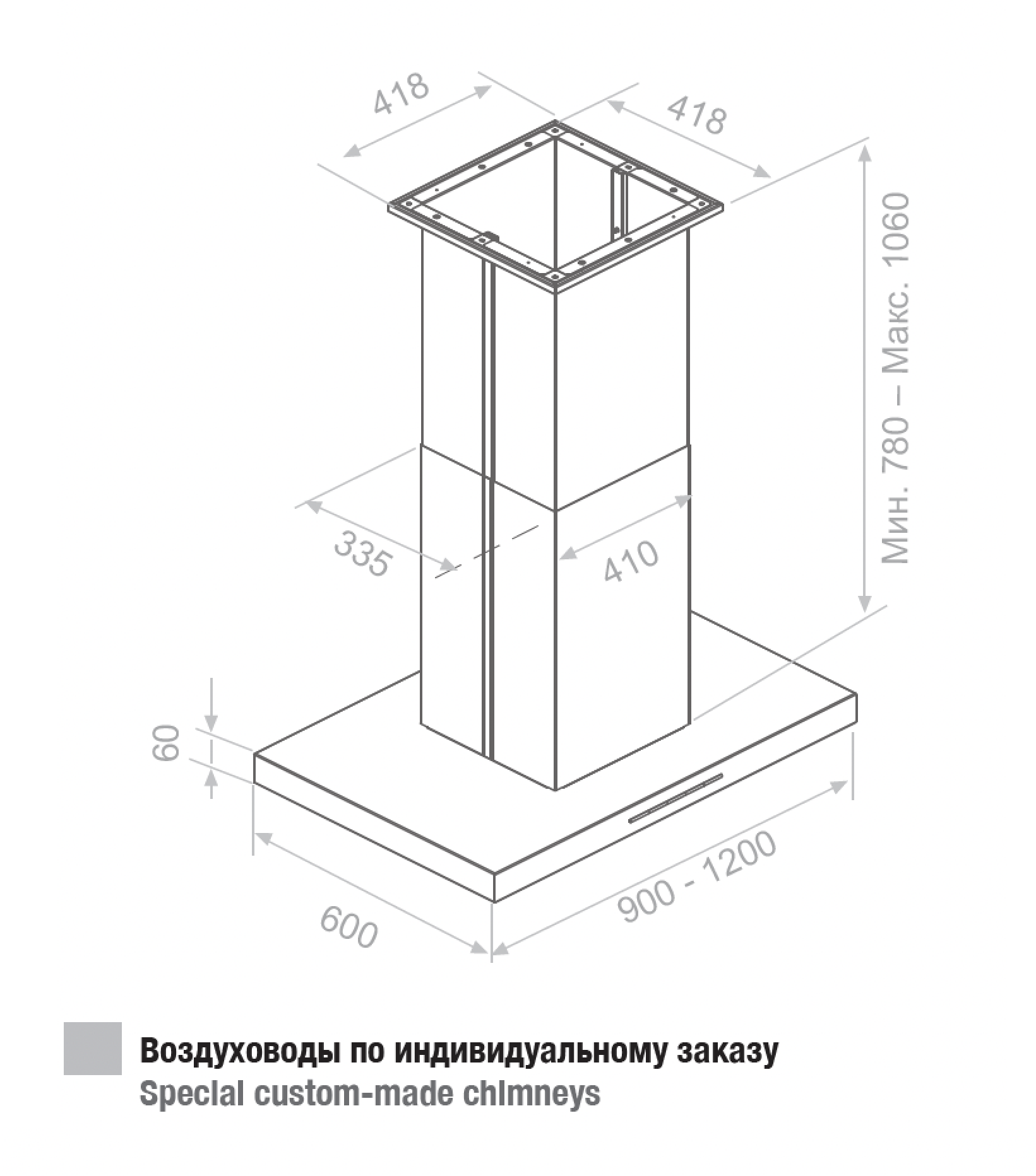 - Минимальная высота установки над варочной поверхностью: 650 мм