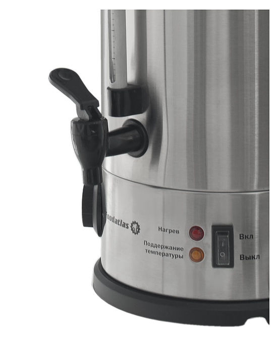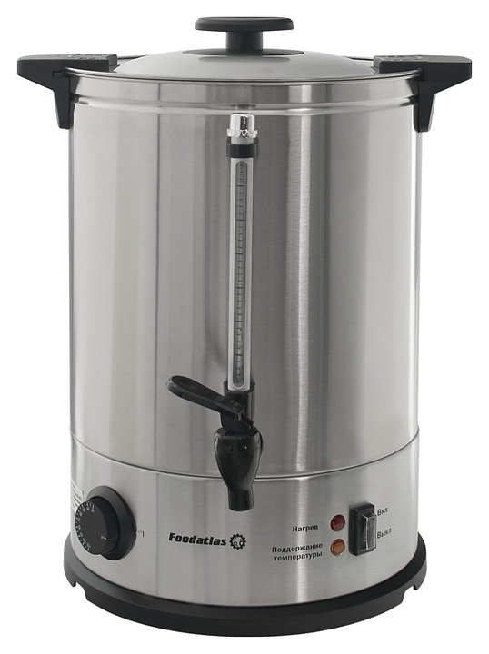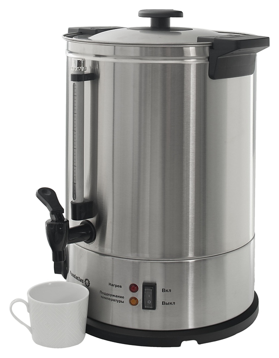 Термопот Foodatlas WB-15L предназначен для подогрева воды на предприятиях общественного питания и торговли, а также в домашних условиях. Модель оснащена кабелем питания с вилкой, краном для розлива, крышкой с грибовидной рукояткой, боковыми транспортировочными рукоятками и электромеханическим управлением. Корпус цилиндрической формы и крышка выполнены из высококачественной нержавеющей стали, фурнитура – из черного пластика, упаковка – картонная коробка. Особенности: