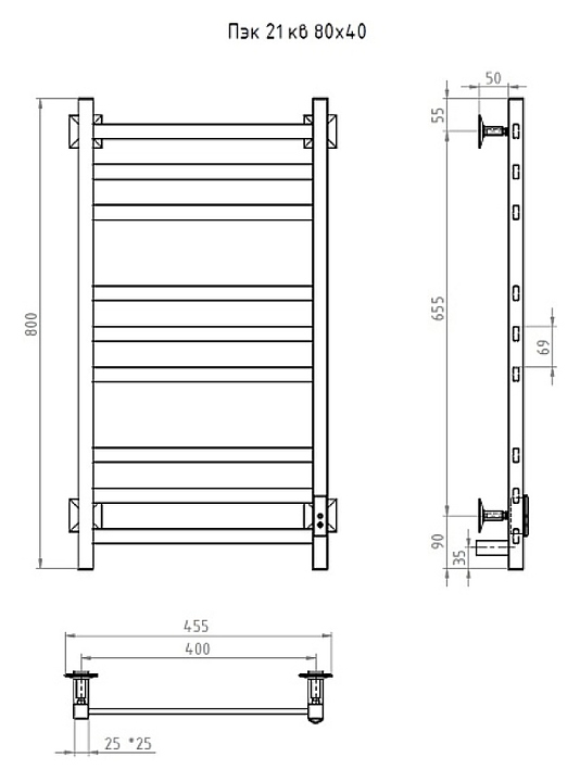 Полотенцесушитель электрический Тругор Пэк сп 21 кв 80х40 см, черный