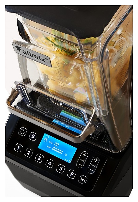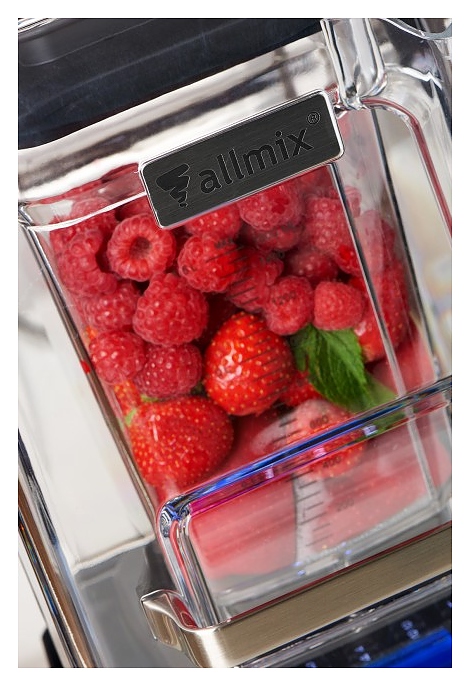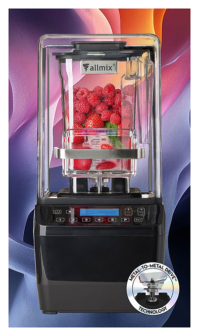 Блендер Allmix AMX-885 предназначен для приготовления смузи, замороженного кофе, супов-пюре и соусов на предприятиях общественного питания и торговли. Модель оснащена звукоизолирующим кожухом, тачскрин клавиатурой, подсветкой и графическим дисплеем. Жесткое, износоустойчивое соединение ножа стакана и вала двигателя по технологии «Metal-To-Metal Drive» без пластиковых или резиновых демпферов гарантирует качественную работу. Кожух выполнен из поликарбоната, тачскрин клавиатура - из минерального стекла, стакан - из полимера Tritan, холоднокованое лезвие - из нержавеющей стали AISI 420, крышка - из резины с пластиковой вставкой, основание моторного блока - из алюминиевого сплава, верхнее основание - из металла с резиновым покрытием. В комплект поставки входит 1 стакан. Особенности: