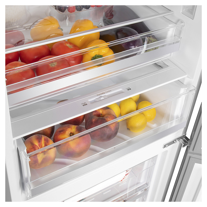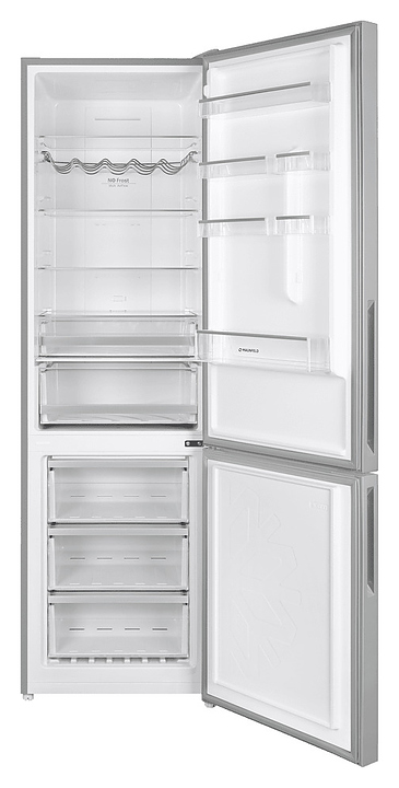 Холодильник Maunfeld MFF200NFS Inverter предназначен для охлаждения, замораживания, кратковременного и длительного хранения пищевых продуктов и напитков в гостиничных комплексах, офисах, а также домашних условиях. Модель оснащена холодильной камерой сверху, морозильной камерой снизу, правосторонними перенавешиваемыми распашными дверьми, кабелем питания с евровилкой и расположенной на верхней двери сенсорной панелью управления с 2 цифровыми дисплеями. Фасад выполнен из стали с сатинированным покрытием под нержавеющую сталь серебристого оттенка, боковины – из стали с антикоррозийным покрытием в цвет фасада, внутренняя облицовка камер – из белого антибактериального пластика, плоские полки – из прозрачного закаленного стекла, навесные полки – из прозрачного пластика, ящики – из белого пластика с прозрачным фронтом, ящики и полки декорированы окантовками серебристого оттенка, упаковка – из гофрокартона, полимерной пленки и полистирола.