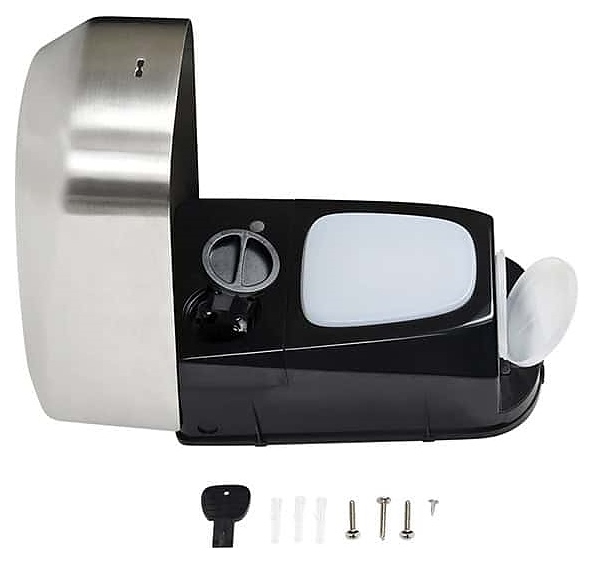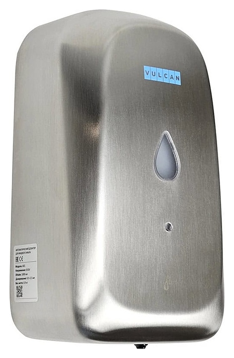 Автоматический дозатор Vulcan A01 предназначен для размещения и дозированной подачи жидкого мыла или антисептика в санитарных узлах гостиниц, предприятий общественного питания и торговли, медицинских и образовательных учреждений, развлекательных комплексов и других мест массового пребывания. Модель оснащена запираемой на ключ крышкой. Вертикально ориентированный обтекаемый корпус изготовлен из нержавеющей стали с матовой серебристой поверхностью. В комплект поставки входят 3 дюбеля, 3 шурупа и ключ. Особенности: