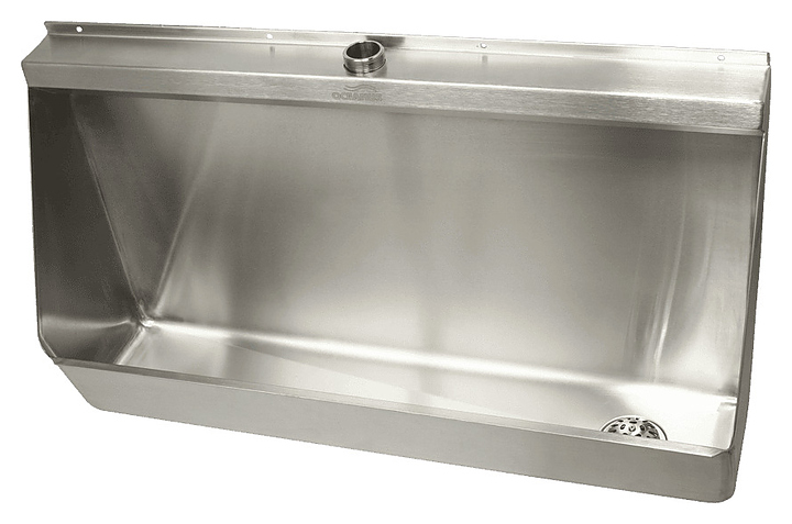 Коллективный писсуар-желоб Oceanus 2-004.1 (L) используется в общественных туалетах предприятий общественного питания и торговли, аэропортов, вокзалов, различных учреждений и других мест массового пребывания. Изделие выполнено из высококачественной нержавеющей стали марки AISI 304. В комплект поставки входят слив сифона и крепления. Особенности: