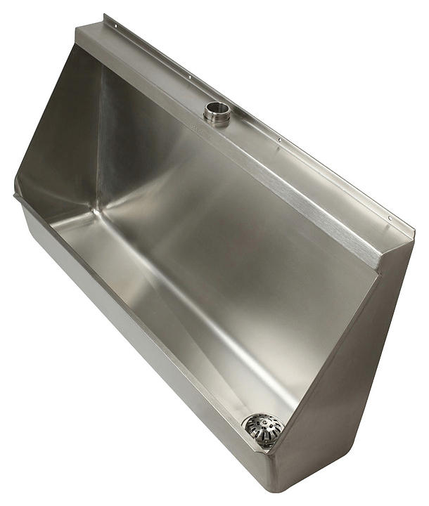 Коллективный писсуар-желоб Oceanus 2-004.1 (R) используется в общественных туалетах предприятий общественного питания и торговли, аэропортов, вокзалов, различных учреждений и других мест массового пребывания. Изделие выполнено из высококачественной нержавеющей стали марки AISI 304. В комплект поставки входят слив сифона и крепления. Особенности: