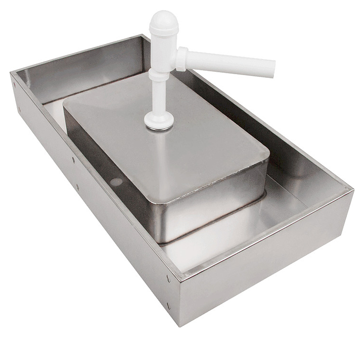 Накладной рукомойник Oceanus 3-009.1 предназначен для мытья рук на предприятиях общественного питания и торговли. Модель оснащена раковиной прямоугольной формы со сглаженными углами, высоким фартуком по периметру, отверстием под смеситель, рабочими поверхностями слева и справа. Изделие выполнено из высококачественной нержавеющей стали марки AISI 304 серебристого оттенка с матовой поверхностью. В комплект поставки входят слив и 4 крепежных самореза 4,8х32. Особенности: