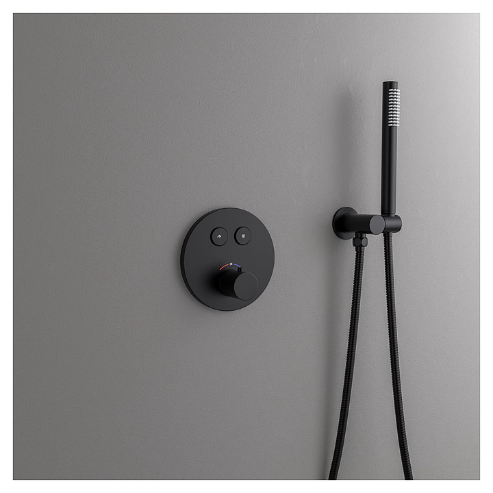 Душевой комплект TIMO Saona SX-2370/03SM предназначен для использования в ванных помещениях. Модель оснащена круглым верхним душем и ручной лейкой с душевым шлангом, а также термостатическим картриджем, обеспечивающим поддержание необходимой температуры в независимости от давления воды. Изделие выполнено из высококачественной латуни, отличающейся прочностью, долговечностью и устойчивостью к перепадам температур. В комплект поставки входят смеситель скрытого монтажа, верхний тропический душ, ручная лейка и душевой шланг, держатель ручной лейки, декоративная накладка смесителя, ручка управления термостатом. Особенности: