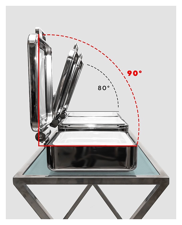 Тепловой мармит F&B Project 80-11LSW предназначен для демонстрации и кратковременного хранения первых блюд, поддержания их в теплом состоянии на предприятиях общественного питания и торговли. Модель оснащена фиксацией открытой крышки на уровне 90 ° для удобства гостей и автоматическим закрытием микролифт, которое исключает заветривание блюд. Верхняя крышка снимается и емкость можно использовать как открытый мармит с тепловой лампой. Корпус выполнен из нержавеющей стали, крышка - из стекла. Подставка в комплект поставки не входит. Особенности:
