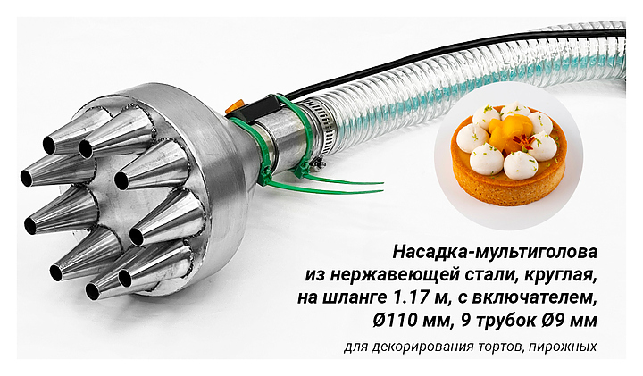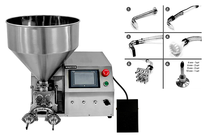 Универсальный дозатор Kocateq OMJ 30 AFD используется на предприятиях пищевой промышленности, общественного питания, в пекарнях и кондитерских для заполнения начинкой пончиков, эклеров, профитролей, кексов, булочек, круассанов и других кондитерских и кулинарных изделий. В качестве начинки можно использовать сливочные, кремовые и полужидкие массы, а также густые начинки. Модель оснащена шестереночным насосом для нагнетания начинки. Корпус выполнен из нержавеющей стали AISI 304. Комплектация: