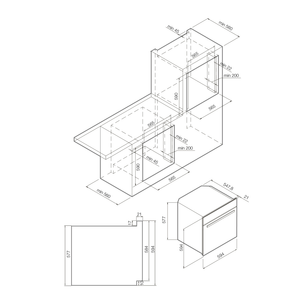 Multi Cooking: нагрев верхнего, нижнего и кольцевого элементов с вентиляцией для равномерного распределения тепла и одновременного приготовления блюд на нескольких уровнях без смешивания запахов