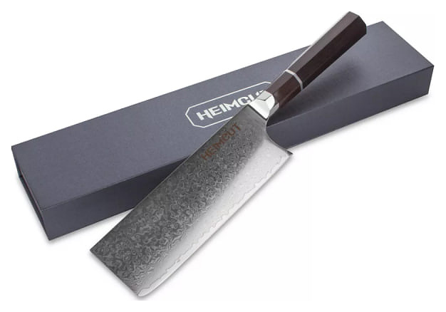 Нож сантоку HEIMCUT Octa Damascus HC/OCTA-NA-18 предназначен для работы с мясом, рыбой и овощами на предприятиях общественного питания. Рукоять изготовлена из дерева палисандр, который отличается прочностью, твердостью и устойчивостью к воздействию жидкостей. Клинок выполнен из стали VG-10 в обкладках из дамаска, устойчивой к коррозии, долговечной, прочной, пластичной, длительно сохраняющей остроту режущей кромки и первоначальный внешний вид во время всего периода эксплуатации. Особенности: