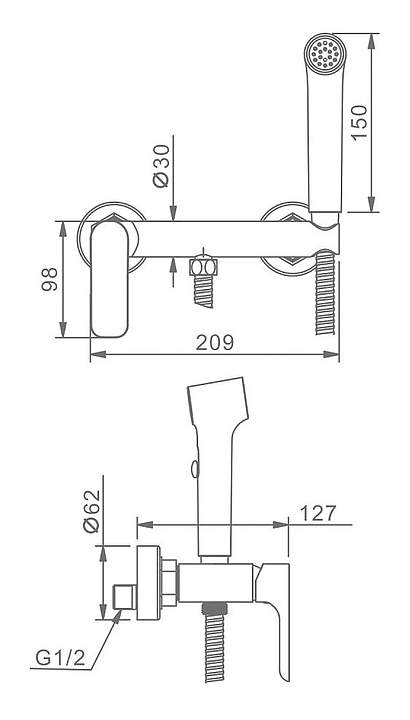 Гигиенический душ Raglo R03.51.03 предназначен для подачи горячей и холодной воды в туалетных комнатах. Модель оснащена керамическим картриджем, который обеспечивает плавный ход рычага смесителя, контроль и точность при выборе напора и температуры воды. Корпус выполнен из высококачественной латуни, отличающейся прочностью, долговечностью и устойчивостью к перепадам температуры, шланг - из металла, лейка - из ABS пластика. В комплект поставки входят смеситель, лейка и шланг. Особенности: