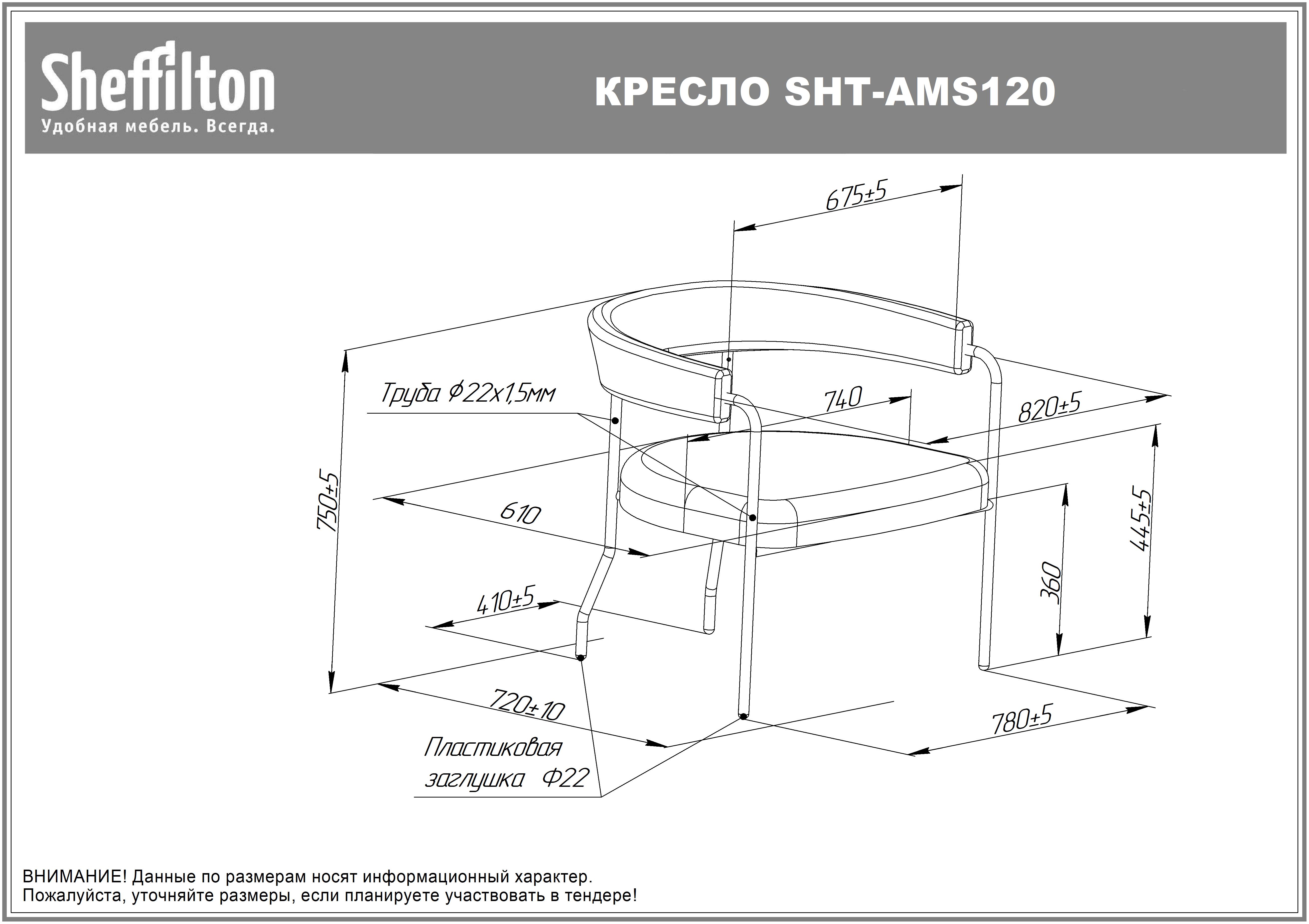 Офисное кресло Sheffilton SHT-AMS120 предназначено для комфортного размещения в офисах, общественных учреждениях, ресторанах, залах ожидания, а также в домашних условиях. Изделие отличается лаконичным дизайном с плавными линиями и мягкими контурами, что создает атмосферу уюта и расслабленности. Модель оснащена мягким сидением особой конструкции, создающим оптимальную поддержку спины и каркаса, каркасом с 4 ножками с подпятниками для защиты покрытия от царапин и большей устройчивости. Каркас выполнен из металлической трубы Ø22x1,5 мм и окрашен порошковой краской, устойчивой к механическому воздействию, сиденье - из букле, наполнитель - из высокоэластичного ППУ, не теряющего своих упругих свойств на протяжении долгих лет. Дополнительные характеристики: