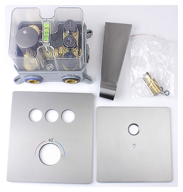 Душевой комплект Bronze de Lux OMG! 1011GM используется в ванных комнатах. Модель оснащена круглыми верхним душем и ручной лейкой. Термостатический картридж гарантирует подачу воды заданной температуры, что исключает ожоги. Изделие выполнено из высококачественной латуни, которая отличается прочностью, долговечностью и устойчивостью к перепадам температур, шланг - из ПВХ. В комплект поставки входят смеситель, верхний душ, ручной душ, шланг для ручного душа, крепления и держатель. Особенности: