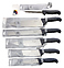 Нож MVQ Profi Color Messer F4241 используется для нарезки различных пищевых продуктов на предприятиях общественного питания и торговли, а также в домашних условиях. Модель оснащена лезвием с прямой режущей кромкой и клиновидным острием. Клинок выполнен из высококачественной высокоуглеродистой нержавеющей стали C50CrMoVa15 (Германия) с содержанием хрома, молибдена и ванадия, рукоятка – из пластика серого цвета. В комплект поставки входят 6 сменных клепок разных цветов: белый, желтый, зеленый, красный, синий и коричневый. Особенности: