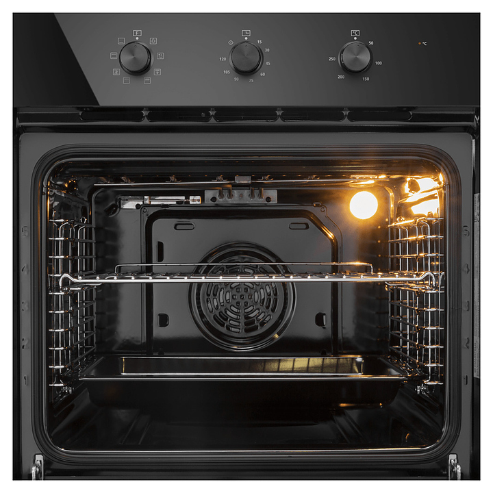 Встраивамый электрический духовой шкаф Maunfeld MEOC708PB2 предназначен для приготовления большого ассортимента блюд в домашних условиях. Модель оснащена камерой с расположенным в задней стенке вентилятором, верхним и нижним нагревательными элементами, верхним грилем, боковыми стойками с 5 уровнями направляющих для противней, откидной дверью со смотровым окном, уплощенной горизонтальной рукояткой, кабелем питания с евровилкой, расположенной в верхней части фронта панелью управления с 3 поворотными цилиндрическими переключателями. Корпус выполнен из высококачественной стали с покрытием фронта черного цвета и полным остеклением фронтальных панелей без винтового крепежа прозрачным закаленным стеклом, боковые стойки и решетка для гриля – из металла с хромированной поверхностью, противень – из стали с эмалированным покрытием, рукоятка и переключатели – из металла с черной матовой поверхностью.