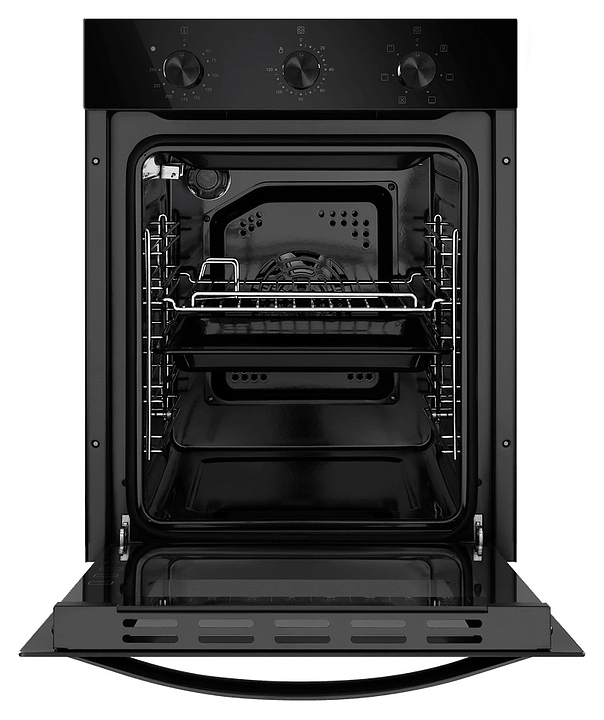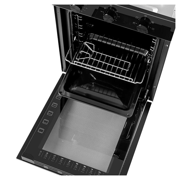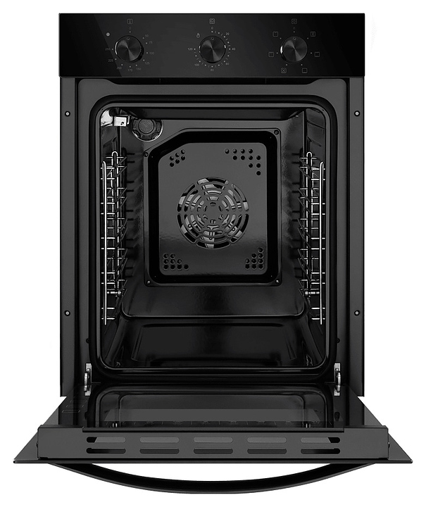 Встраивамый электрический духовой шкаф Maunfeld EOEC516B2 предназначен для приготовления большого ассортимента блюд в домашних условиях. Модель оснащена камерой с расположенным в задней стенке вентилятором, верхним и нижним нагревательными элементами, верхним грилем, боковыми стойуами с 5 уровнями направляющих для противней, откидной дверью со смотровым окном, уплощенной дугообразной горизонтальной рукояткой, кабелем питания с евровилкой, расположенной в верхней части фронта панелью управления с 3 поворотными цилиндрическими переключателями. Корпус выполнен из высококачественной стали с покрытием фронта черного цвета и полным остеклением фронтальных панелей без винтового крепежа прозрачным закаленным стеклом, боковые стойки, решетка для гриля и прихват для противней – из металла с хромированной поверхностью, противень – из стали с эмалированным покрытием, рукоятка и переключатели – из металла с черной матовой поверхностью.