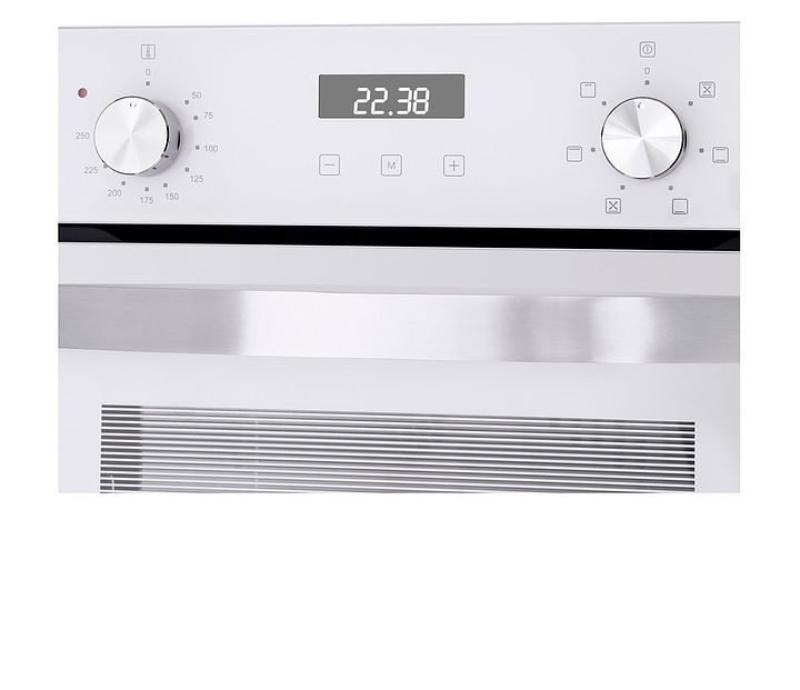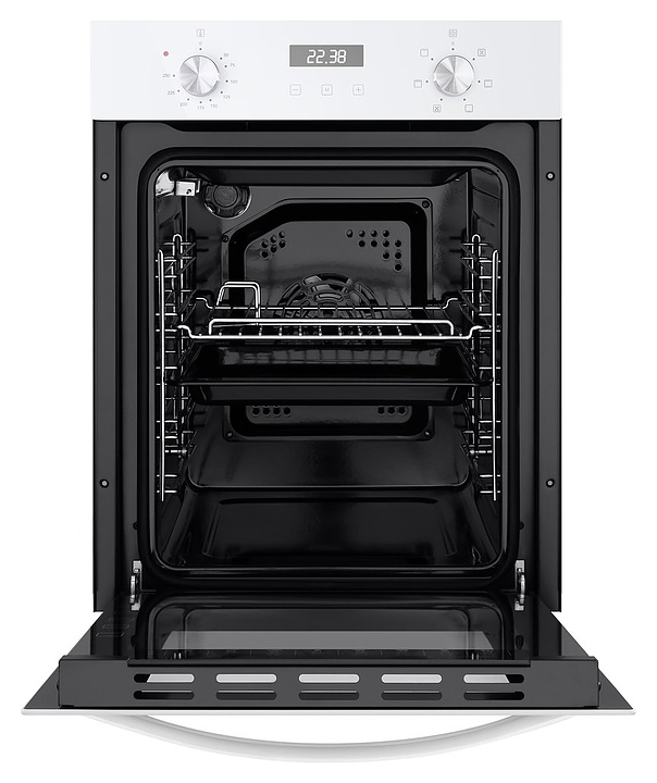 Встраивамый электрический духовой шкаф Maunfeld EOEM516W предназначен для приготовления большого ассортимента блюд в домашних условиях. Модель оснащена камерой с расположенным в задней стенке вентилятором, верхним и нижним нагревательными элементами, верхним грилем, 2 боковыми стойками с 5 уровнями направляющих для противней, откидной дверью со смотровым окном, уплощенной дугообразной горизонтальной рукояткой, кабелем питания с евровилкой, расположенной в верхней части фронта панелью управления с 2 поворотными цилиндрическими переключателями, сенсорными функциональными клавишами и светодиодным дисплеем с белой подсветкой индикации. Корпус выполнен из высококачественной стали, фронт с покрытием белого цвета и полным остеклением без винтового крепежа прозрачным закаленным стеклом, боковые стойки, решетка для гриля и прихват для противней – из металла с хромированной поверхностью, противень – из стали с эмалированным покрытием, рукоятка и переключатели – из металла с матовой поверхностью цвета нержавеющей стали.