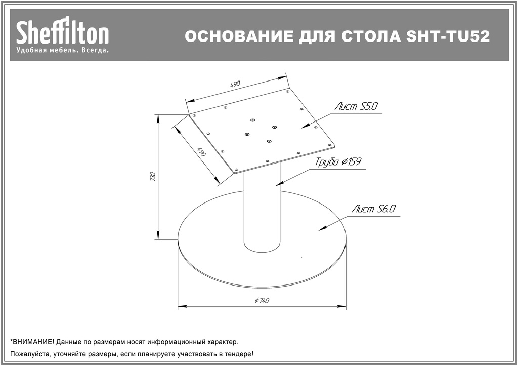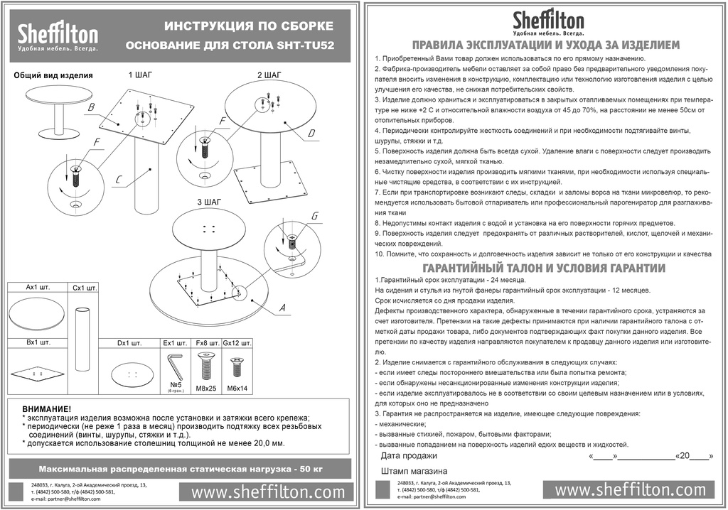 Подстолье Sheffilton SHT-TU52 используется в качестве опоры для столешницы обеденного столика в кафе, ресторанах и на других предприятиях общественного питания и торговли. Модель имеет устойчивую конструкцию из опорной плоскости квадратной формы, опорной стойки круглого сечения и массивного круглого основания. Компоненты выполнены из металла с покрытием порошковой краской оттенка черный муар, упаковка – из картона. Цена указана за 1 шт. Особенности: