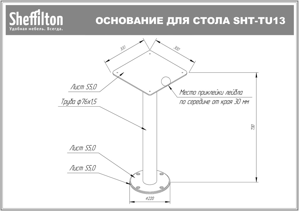Подстолье Sheffilton SHT-TU13 используется в качестве опоры для столешницы обеденного столика в кафе, ресторанах и на других предприятиях общественного питания и торговли. Модель имеет устойчивую конструкцию из опорной плоскости квадратной формы, опорной стойки круглого сечения и круглого основания. Компоненты выполнены из металла с покрытием порошковой краской оттенка черный муар, упаковка – из полиэтилена. Цена указана за 1 шт. Особенности: