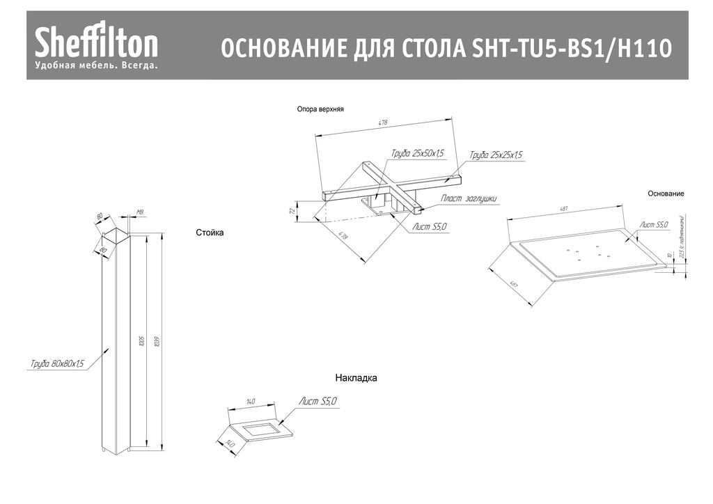 Барное подстолье Sheffilton SHT-TU5-BS1/H110 используется в качестве опоры для столешницы обеденного столика в бистро, барах и на других предприятиях общественного питания и торговли. Модель имеет устойчивую конструкцию из усиленной несущей крестовины, опорной стойки квадратного сечения и квадратного основания на 4 ножках. Компоненты выполнены из металла с покрытием порошковой краской черного цвета, несущая крестовина – из профиля трубы квадратного сечения, заглушки крестовины – из черного пластика, упаковка – из картона и полиэтилена. Цена указана за 1 шт. Особенности: