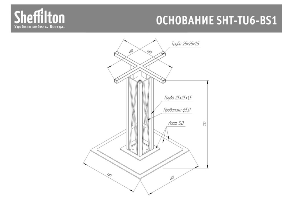 Подстолье Sheffilton SHT-TU6-BS1 используется в качестве опоры для столешницы обеденного столика в кафе, ресторанах и на других предприятиях общественного питания и торговли. Модель имеет устойчивую конструкцию из усиленной несущей крестовины, состоящей из 4 труб квадратного сечения и прутка опорной стойки и квадратного основания на 4 ножках. Компоненты выполнены из металла с покрытием порошковой краской черного цвета, несущая крестовина – из профиля трубы квадратного сечения, заглушки крестовины – из черного пластика, упаковка – из картона и полиэтилена. Цена указана за 1 шт. Особенности: