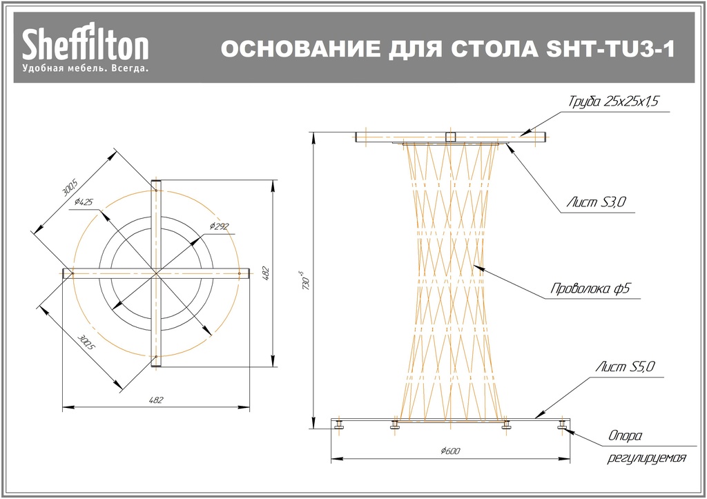 Подстолье Sheffilton SHT-TU3-1 используется в качестве опоры для столешницы обеденного столика в кафе, ресторанах и на других предприятиях общественного питания и торговли. Модель имеет устойчивую конструкцию из несущей крестовины, состоящей из прутка решетчатой опорной стойки в форме вогнутого цилиндра и круглого основания на 6 ножках. Компоненты выполнены из металла с покрытием порошковой краской оттенка черный муар, крестовина – из профиля трубы квадратного сечения, упаковка – из картона. Цена указана за 1 шт. Особенности: