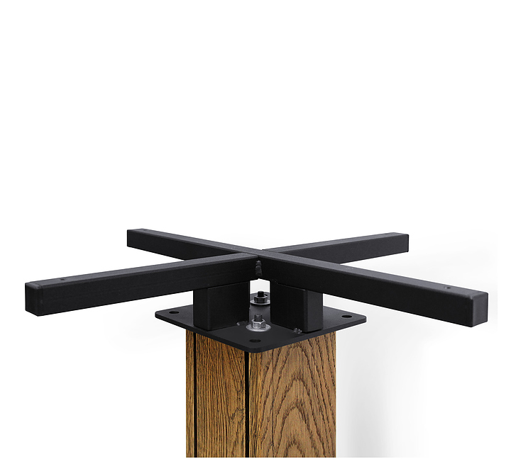 Подстолье Sheffilton SHT-TU22 используется в качестве опоры для столешницы обеденного столика в кафе, ресторанах и на других предприятиях общественного питания и торговли. Модель имеет устойчивую конструкцию из усиленной несущей крестовины, опорной стойки и квадратного основания на 4 ножках. Опорная стойка выполнена из профиля трубы квадратного сечения и декорирована панелями из массива дубовой древесины с брашированной поверхностью в коричневых тонах, прочие компоненты – из металла с покрытием порошковой краской черного цвета, несущая крестовина – из профиля трубы квадратного сечения, заглушки крестовины – из черного пластика, упаковка – из картона и полиэтилена. Цена указана за 1 шт. Особенности: