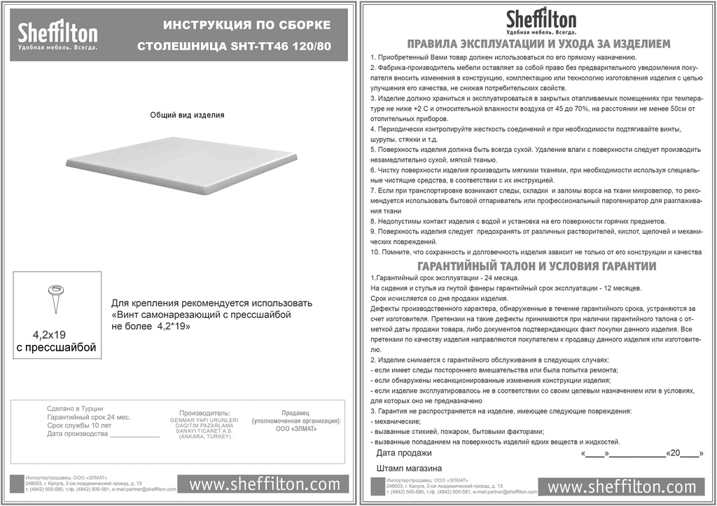 ТМ Sheffilton входит в группу компаний "ELMAT group" и является лидером рынка современной мебели для дома, офиса и кафе. |
