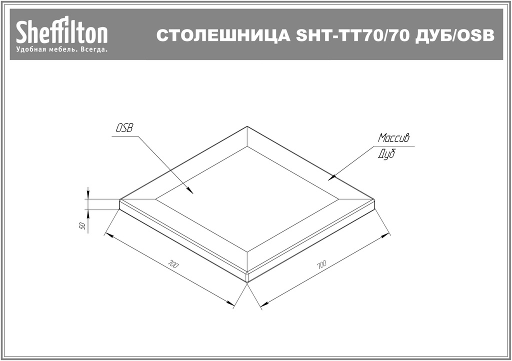 Столешница Sheffilton SHT-TT 70/70 используется совместно с подстольями соответствующих размеров для обеденных столиков в кафе, ресторанах и на других предприятиях общественного питания и торговли. Модель квадратной формы выполнена из массива дубовой древесины по периметру и ориентированно-стружечной плиты (ОСП) с покрытой прозрачным лаком лицевой поверхностью в коричневых тонах, упаковка – из картона. Цена указана за 1 шт. Особенности: