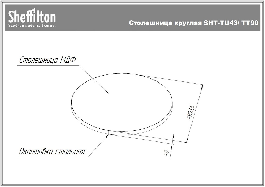 Столешница Sheffilton SHT-TT 90 используется совместно с подстольями соответствующих размеров для обеденных столиков в кафе, ресторанах и на других предприятиях общественного питания и торговли. Модель круглой формы выполнена из древесноволокнистой плиты средней плотности (МДФ) без содержания токсичных примесей с покрытием лицевой поверхности из ламината высокого давления (HPL) оттенка сахара с тиснением гранит и окантовкой торцов золотистого оттенка, упаковка – из картона. Цена указана за 1 шт. Особенности: