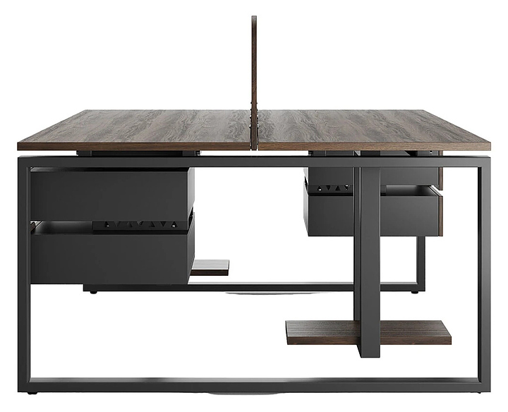 Офисный стол Кобор O1/2-180/160 black/charlston используется в офисных помещениях и кабинетах руководителей. Модель оснащена O-образными опорами. Каркас и опоры выполнены из металла, выкрашенного в цвет черный муар (RAL9005), столешница – из ламинированной древесно-стружечной плиты (ЛДСП) цвета дуб чарльстон (H3154 ST36). Дополнительные характеристики:
