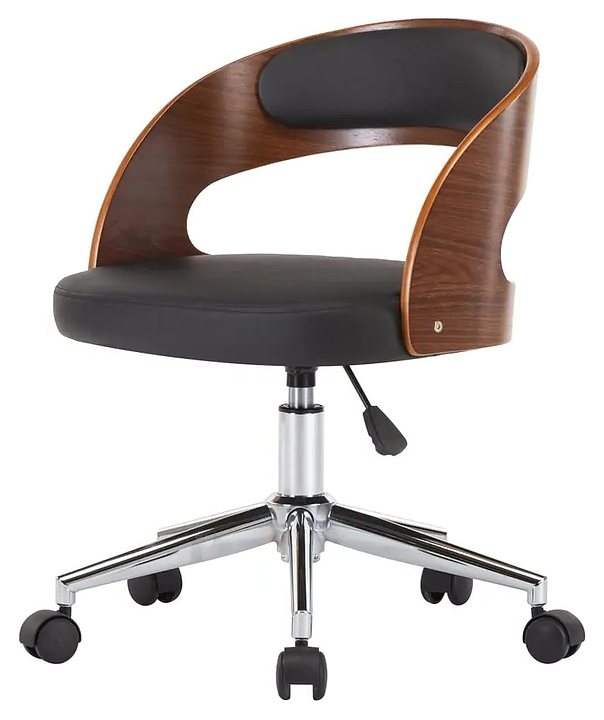 Компьютерный стул Hesby Echo используется для комфортного размещения пользователя компьютера в кабинетах и офисах различных учреждений, а также в домашних условиях. Модель оснащена мягким сиденьем, спинкой в форме полукруга с изогнутыми боковыми бортами, опорой с устойчивым пятилучьем и рычагом регулировки. Каркасы спинки и сиденья выполнены из фанеры с поверхностью под древесину в коричневых тонах, обивка – из полимера под кожу с матовой черной поверхностью, опора и пятилучье – из хромированного металла, наполнитель обивки – из пенополиуретана. Особенности: