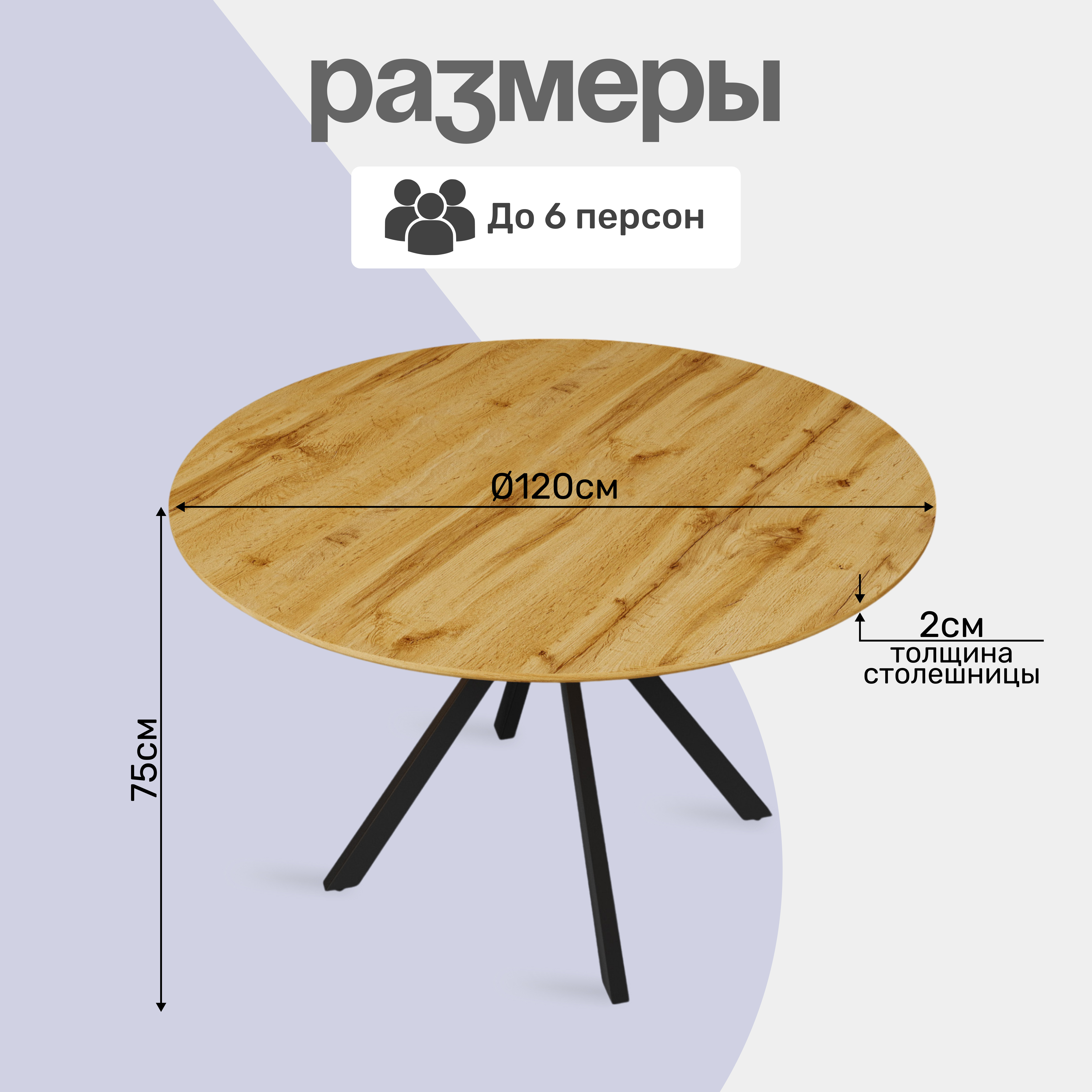 Обеденный стол Hesby Luminary Fusion используется для оформления интерьера на предприятиях общественного питания и в домашних условиях. Модель оснащена круглой столешницей и устойчивым подстольем с 4 наклонными опорами. Столешница выполнена из ламинированной древесноволокнистой плиты средней плотности (ЛМДФ) с влагостойкой матовой поверхностью под светлое дерево, подстолье – из металлического профиля с покрытием черного цвета. В комплект поставки входят 6-гранный ключ, крепеж и инструкция по сборке. Особенности: