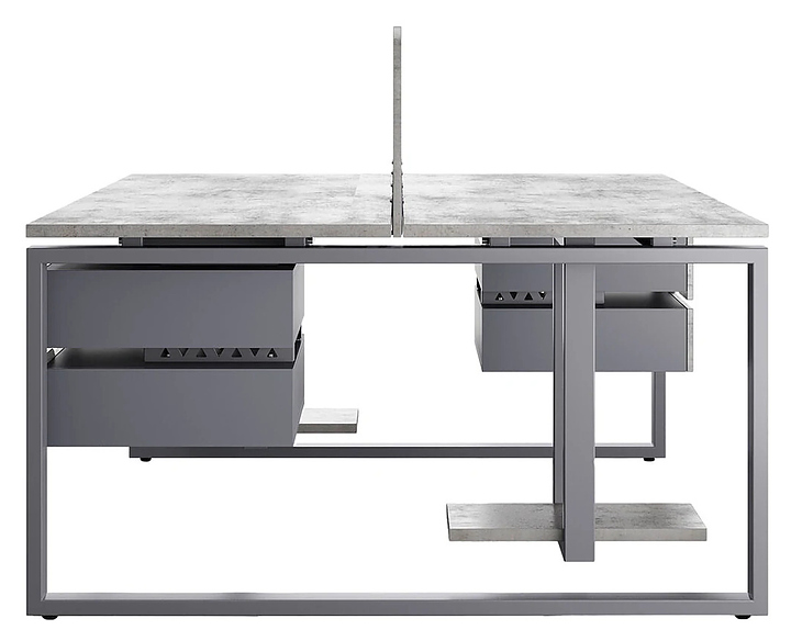 Офисный стол Кобор O1/2-100/160 graphite/chicago на 2 рабочих места используется в офисных помещениях и кабинетах руководителей. Модель оснащена O-образными опорами. Каркас и опоры выполнены из металла, выкрашенного в цвет графит муар (RAL7024), столешница – из ламинированной древесно-стружечной плиты (ЛДСП) цвета бетон чикаго (F186 ST9). Дополнительные характеристики: