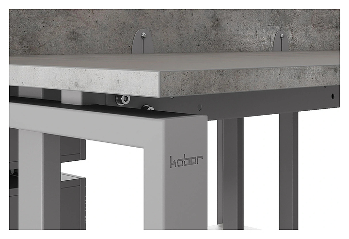 Офисный стол Кобор O1/2-180/160 aluminum/chicago на 2 рабочих места используется в офисных помещениях и кабинетах руководителей. Модель оснащена O-образными опорами. Каркас и опоры выполнены из металла, выкрашенного в цвет алюминиевый металлик (RAL9006), столешница – из ламинированной древесно-стружечной плиты (ЛДСП) цвета бетон чикаго (F186 ST9). Дополнительные характеристики: