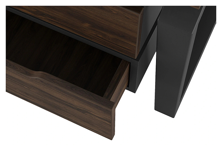 Офисный стол Кобор TB/2-140/120 black/charlston на 2 рабочих места используется в офисных помещениях и кабинетах руководителей. Модель оснащена опорами в форме обратной трапеции со скошенными верхними углами. Каркас и опоры выполнены из металла, выкрашенного в цвет черный муар (RAL9005), столешница – из ламинированной древесно-стружечной плиты (ЛДСП) цвета дуб чарльстон (H3154 ST36). Дополнительные характеристики: