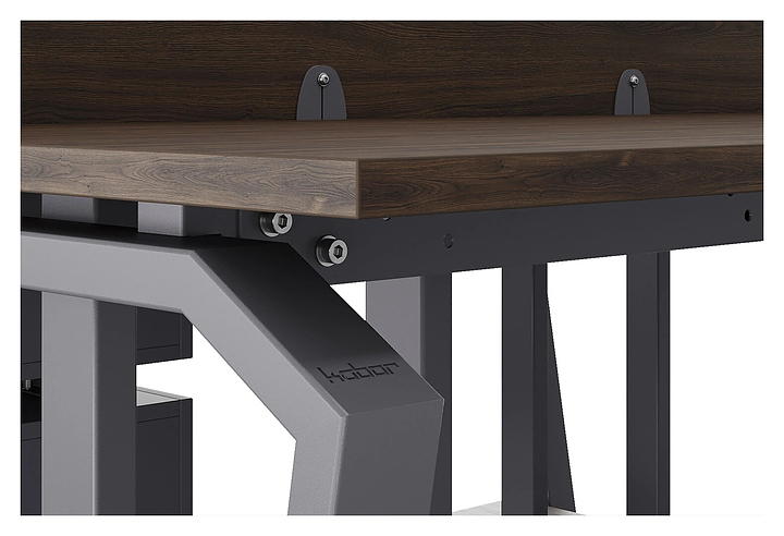 Офисный стол Кобор TB/2-140/120 graphite/charlston на 2 рабочих места используется в офисных помещениях и кабинетах руководителей. Модель оснащена опорами в форме обратной трапеции со скошенными верхними углами. Каркас и опоры выполнены из металла, выкрашенного в цвет графит муар (RAL7024), столешница – из ламинированной древесно-стружечной плиты (ЛДСП) цвета дуб чарльстон (H3154 ST36). Дополнительные характеристики: