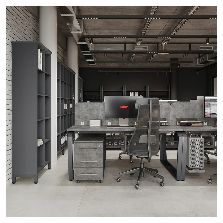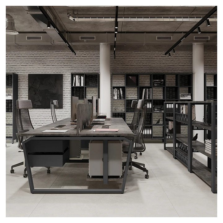 Офисный стол Кобор TB/2-100/160 aluminum/chicago на 2 рабочих места используется в офисных помещениях и кабинетах руководителей. Модель оснащена опорами в форме обратной трапеции со скошенными верхними углами. Каркас и опоры выполнены из металла, выкрашенного в цвет алюминиевый металлик (RAL9006), столешница – из ламинированной древесно-стружечной плиты (ЛДСП) цвета бетон чикаго (F186 ST9). Дополнительные характеристики: