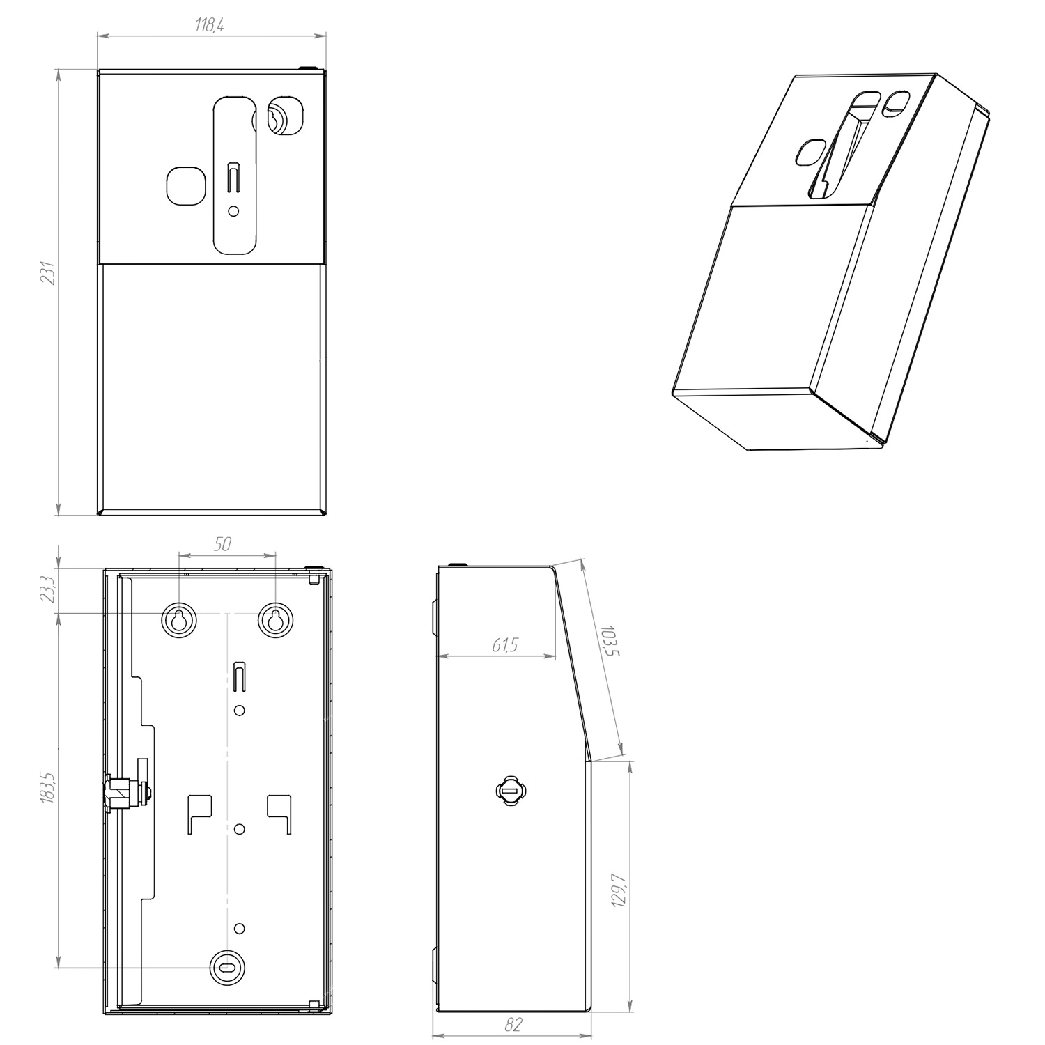 Контейнер Merida STELLA R GSP018.R предназначен для размещения электронного диспенсера освежителя воздуха серий HARMONY и ONE в общественных санитарных узлах гостиниц, вокзалов, предприятий общественного питания, медицинских учреждений и других мест массового пребывания. Модель оснащена запираемой на ключ крышкой и расположенными на наклонной фронтальной панели отверстиями для подачи и индикации. Вертикально ориентированный корпус прямоугольного сечения изготовлен из нержавеющей стали марки AISI 304 с полированной поверхностью, упаковка – гофрокороб. Особенности: