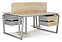 Офисный стол Кобор TB/2-140/140 aluminum/natural на 2 рабочих места используется в офисных помещениях и кабинетах руководителей. Модель оснащена опорами в форме обратной трапеции со скошенными верхними углами. Каркас и опоры выполнены из металла, выкрашенного в цвет алюминиевый металлик (RAL9006), столешница – из ламинированной древесно-стружечной плиты (ЛДСП) цвета натуральный дуб (H1180 ST37). Дополнительные характеристики: