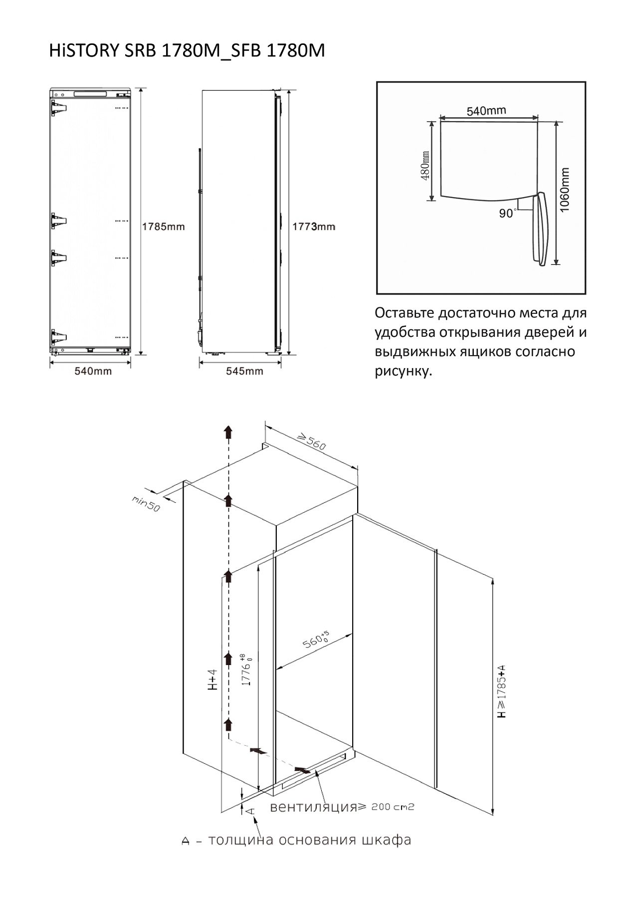 - Возможность совместной эксплуатации с холодильником SRB 1780M при установке Side-by-Side