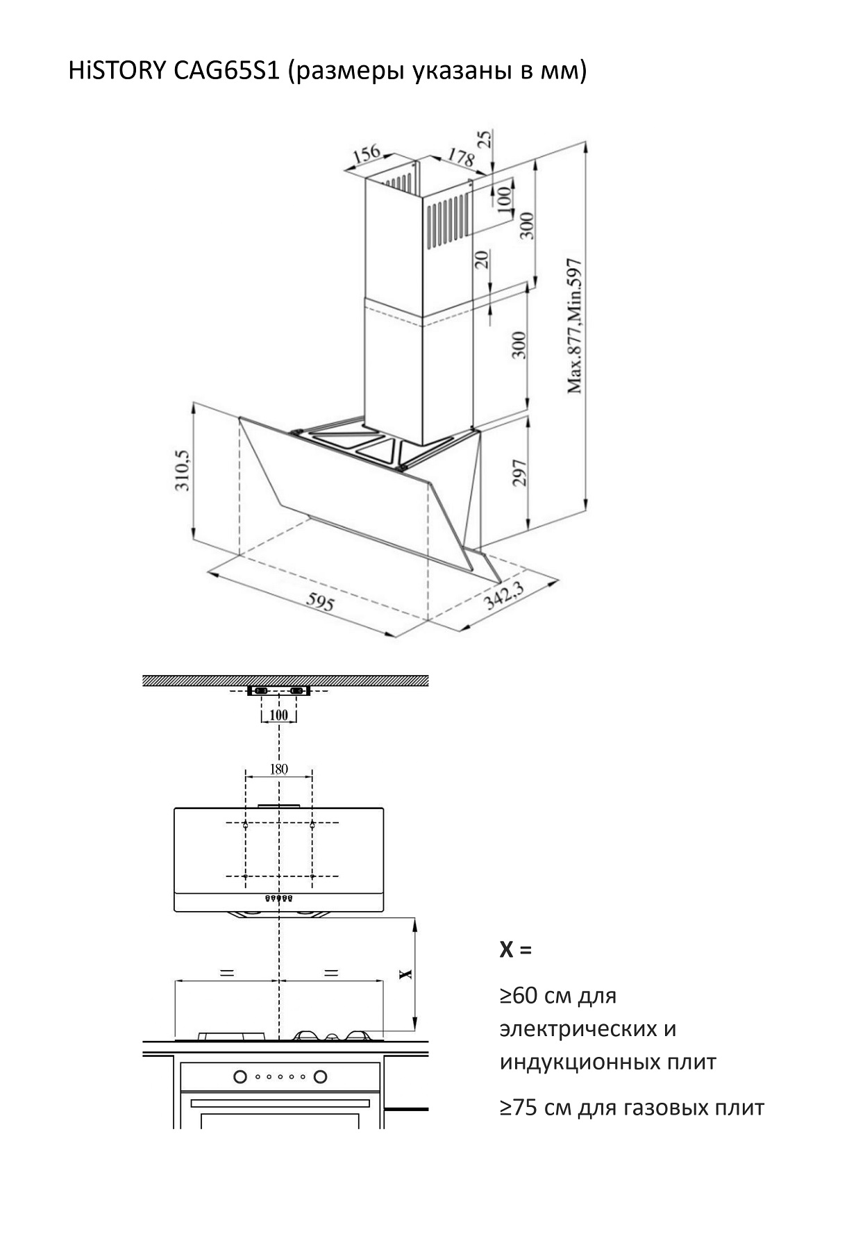 Вытяжка кухонная HiSTORY CAG 65S1 FWH белая