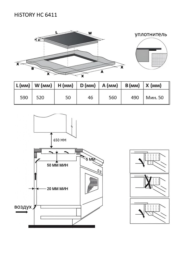 - На столешнице: 50 мм
